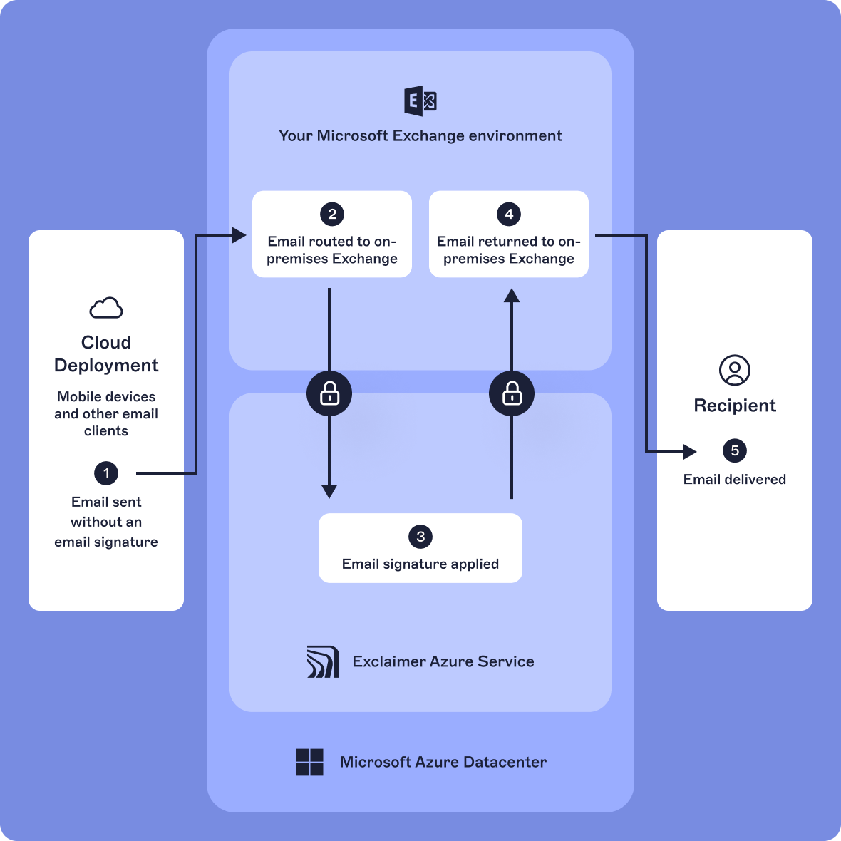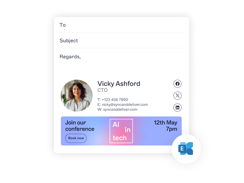 Exclaimer integrates directly with Outlook for Microsoft Exchange Online, applying email signatures instantly as users compose messages — without rerouting emails through external services.