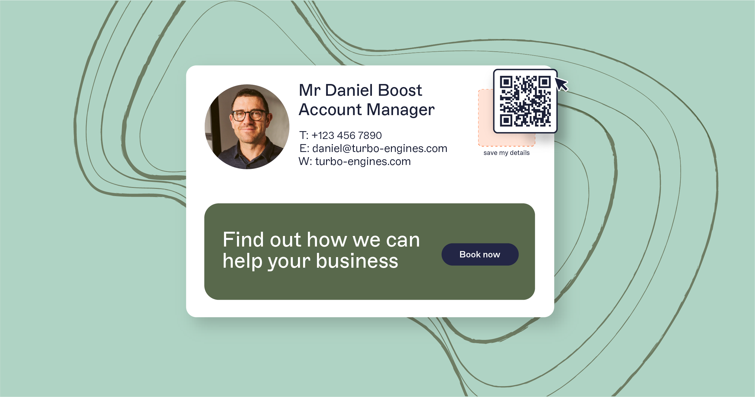 Think of your signature as a mini digital business card. It already contains all your most up-to-date contact information. But taking this further, adding a downloadable vCard (virtual contact card) using a QR code in your email signatures, lets recipients save your details straight to their device. This removes the need to print paper business cards.