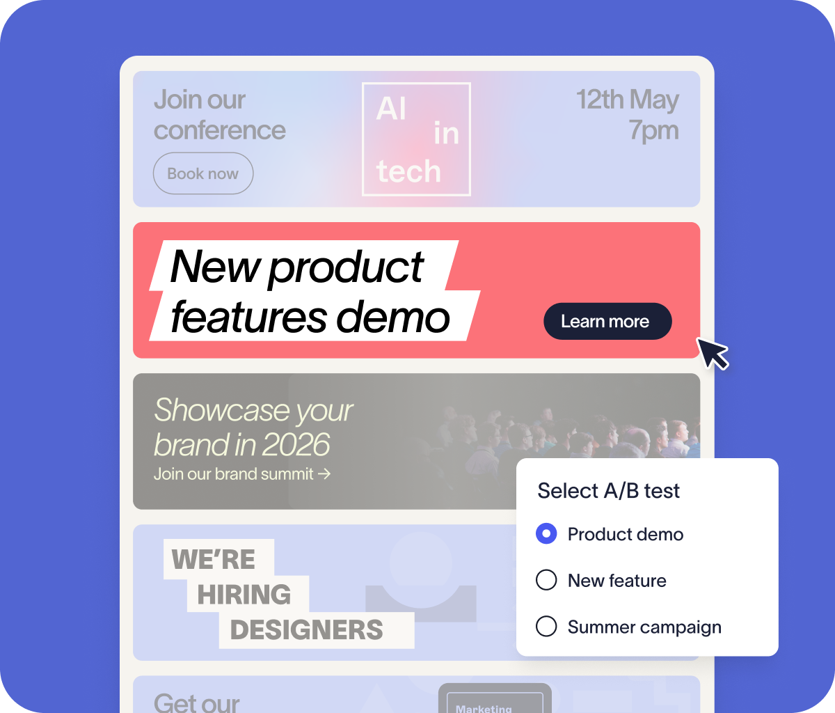 Yes. Exclaimer’s role-based access controls enable the delegation of certain aspects of the signature process, giving Marketing, for example, a dedicated Campaigns workspace, rotating banners for A/B testing, CRM-based targeting, and native analytics functionality–all centrally managed and within IT’s guardrails.