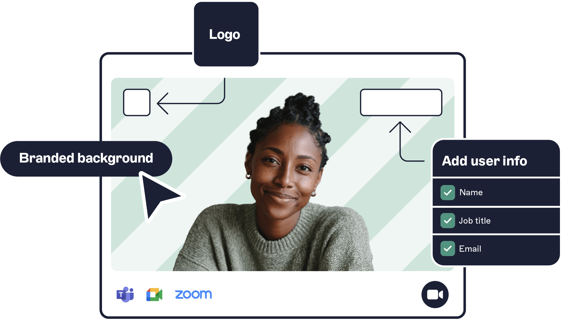 Laden Sie Ihr Logo hoch, fügen Sie bei Bedarf ein Hintergrundbild hinzu, wählen Sie Schriftarten und Farben – Exclaimer erstellt daraus automatisch ein individuelles Meeting-Design für jeden Nutzer.