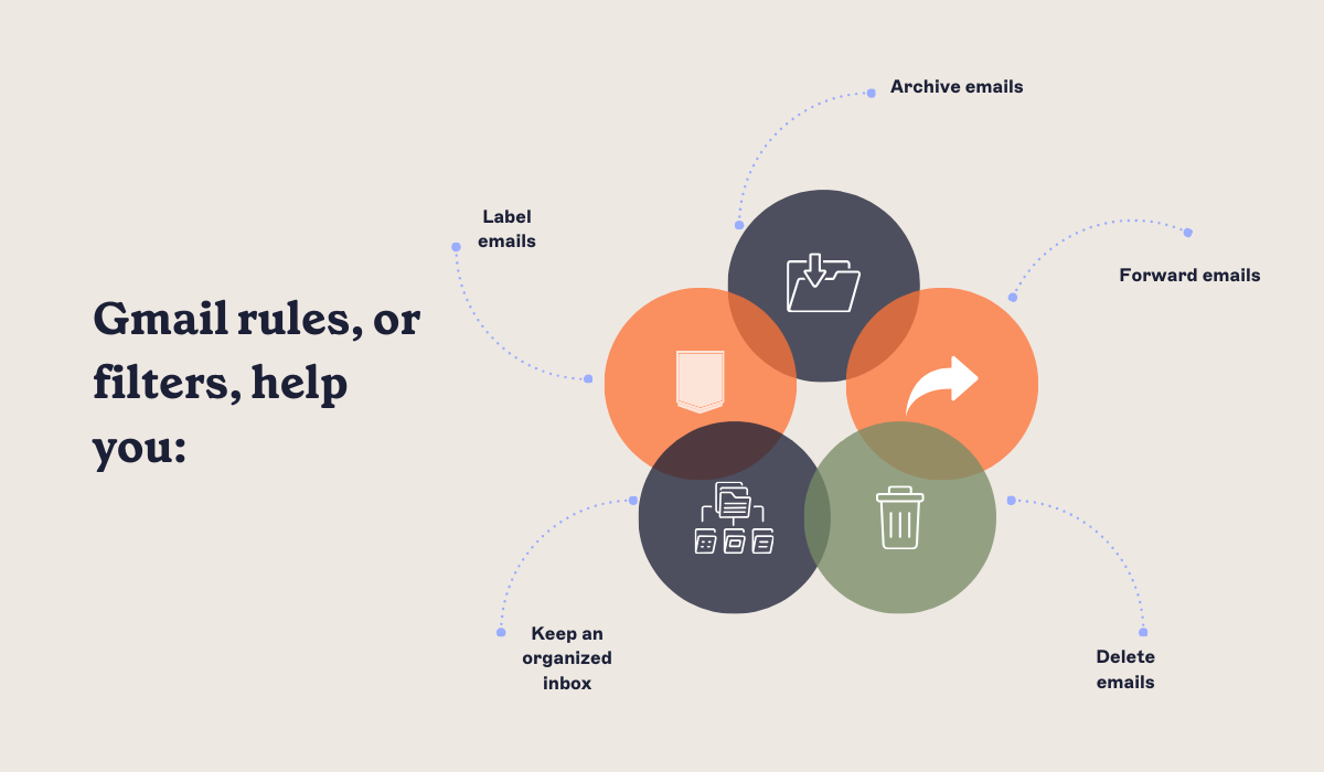 • Improved organization: Gmail rules can automatically label, archive, or delete your Gmail emails, making it easier to find and manage your inbox.