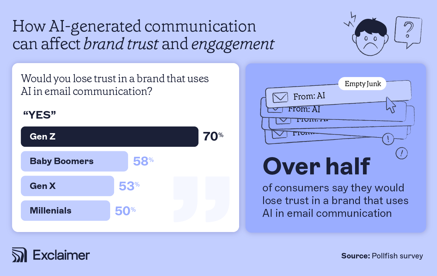 Trust is crucial in brand relationships. However, AI’s usage in email communication has introduced significant challenges. Much of these stem from consumers' concerns about the absence of a human touch behind the brand.