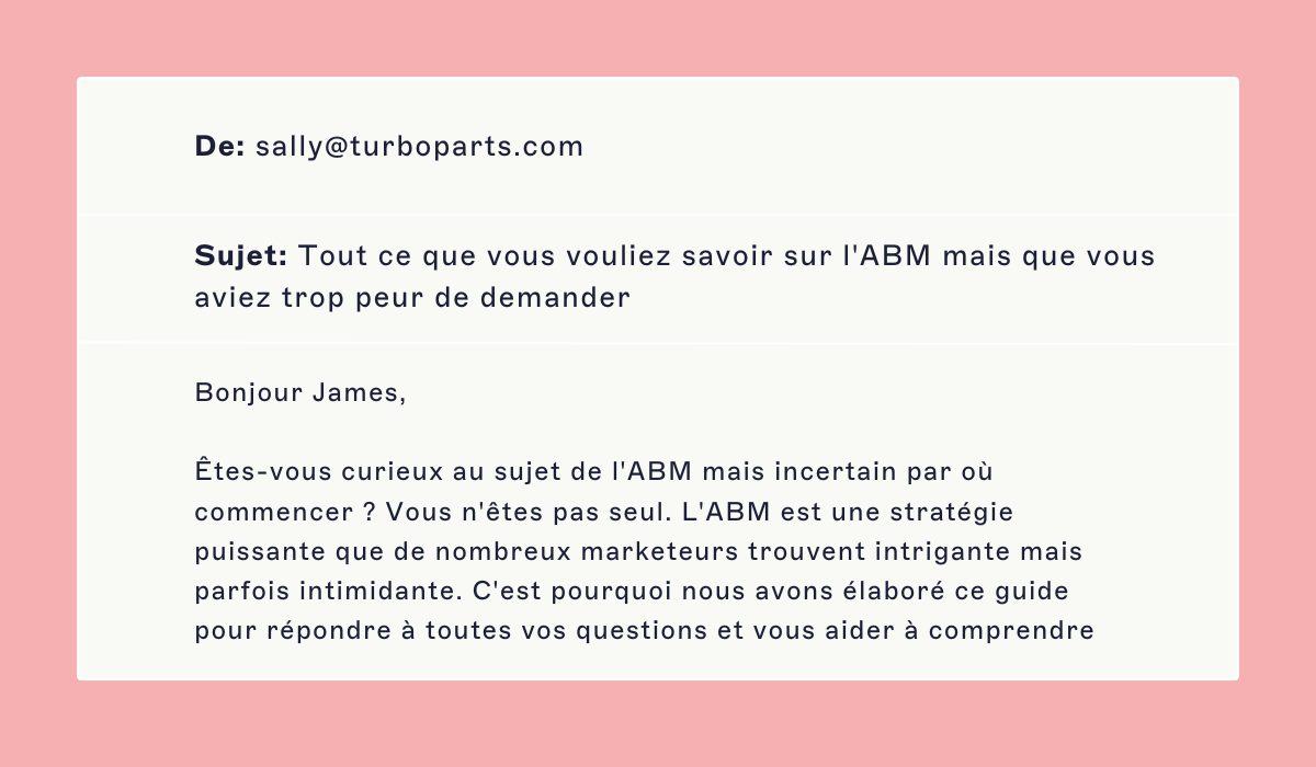 Mais comment vous assurer que les destinataires lisent vos e-mails, apprécient le contenu et passent à l'action ? En suivant les 6 conseils énumérés ci-dessous. Explorons les meilleures pratiques d'e-mail les plus importantes pour l'ABM.