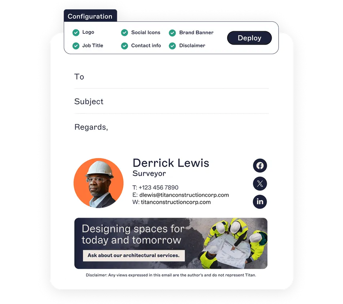 Stay compliant, on-brand, and in control. Standardize email signatures across job sites, offices, and field crews with Exclaimer’s enterprise-grade solution.