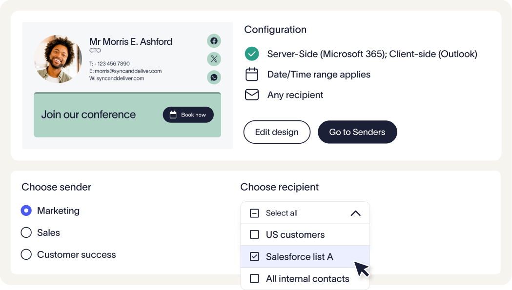 Centrally manage email signatures across Microsoft 365, Google Workspace, and Microsoft Exchange.