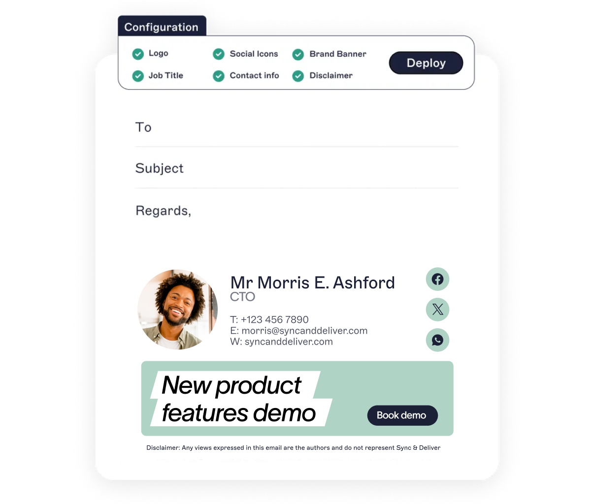 Build signature templates in minutes and roll out updates company-wide. No manual edits, no chasing down users.