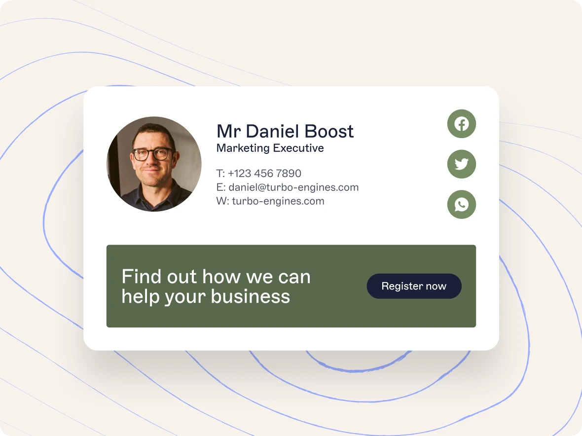 Abbiamo reso più semplice che mai in passato creare firme e-mail di grande presa. Non serve un designer grafico: puoi creare e personalizzare tutti i modelli di cui hai bisogno utilizzando il nostro designer drag and drop.