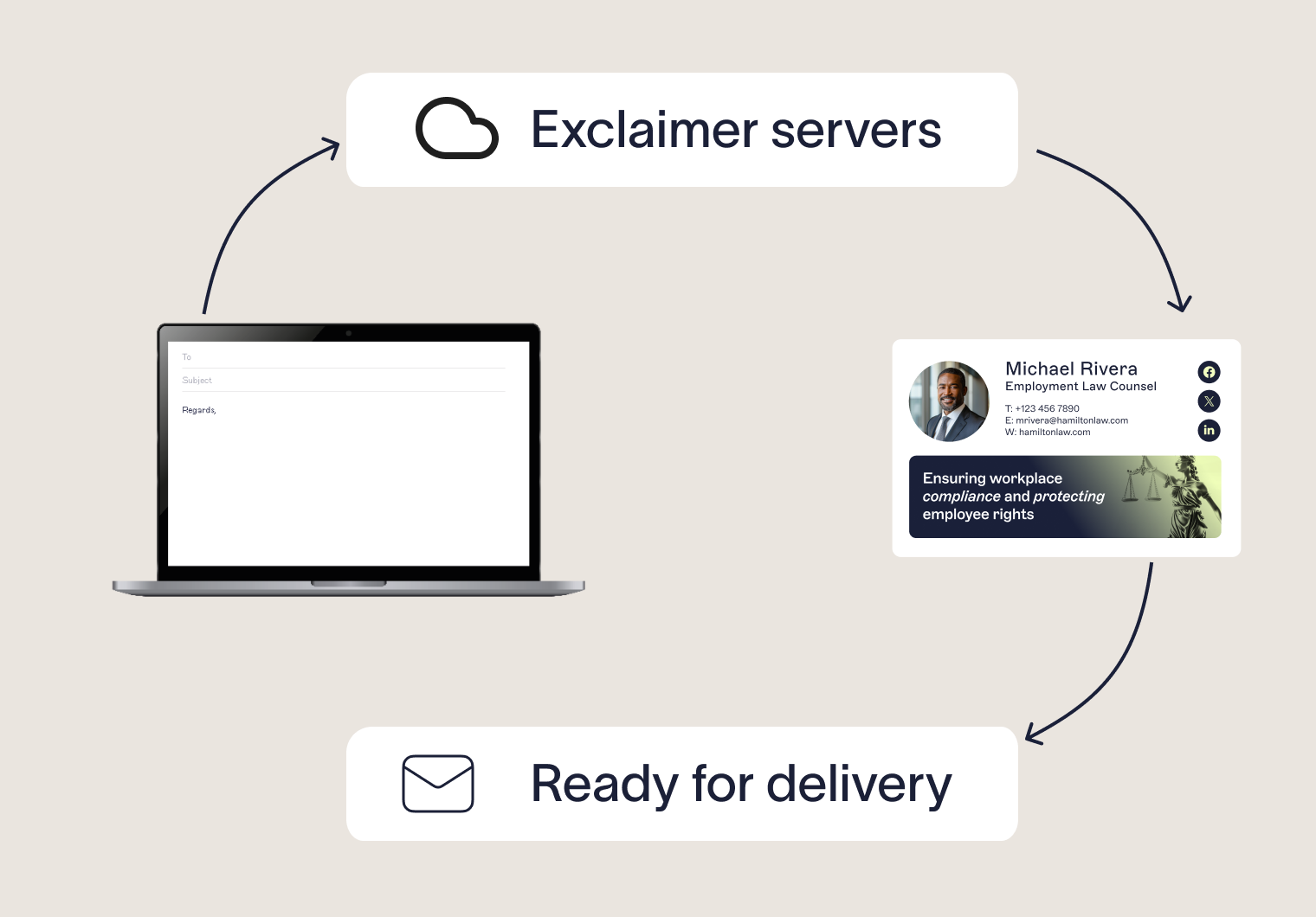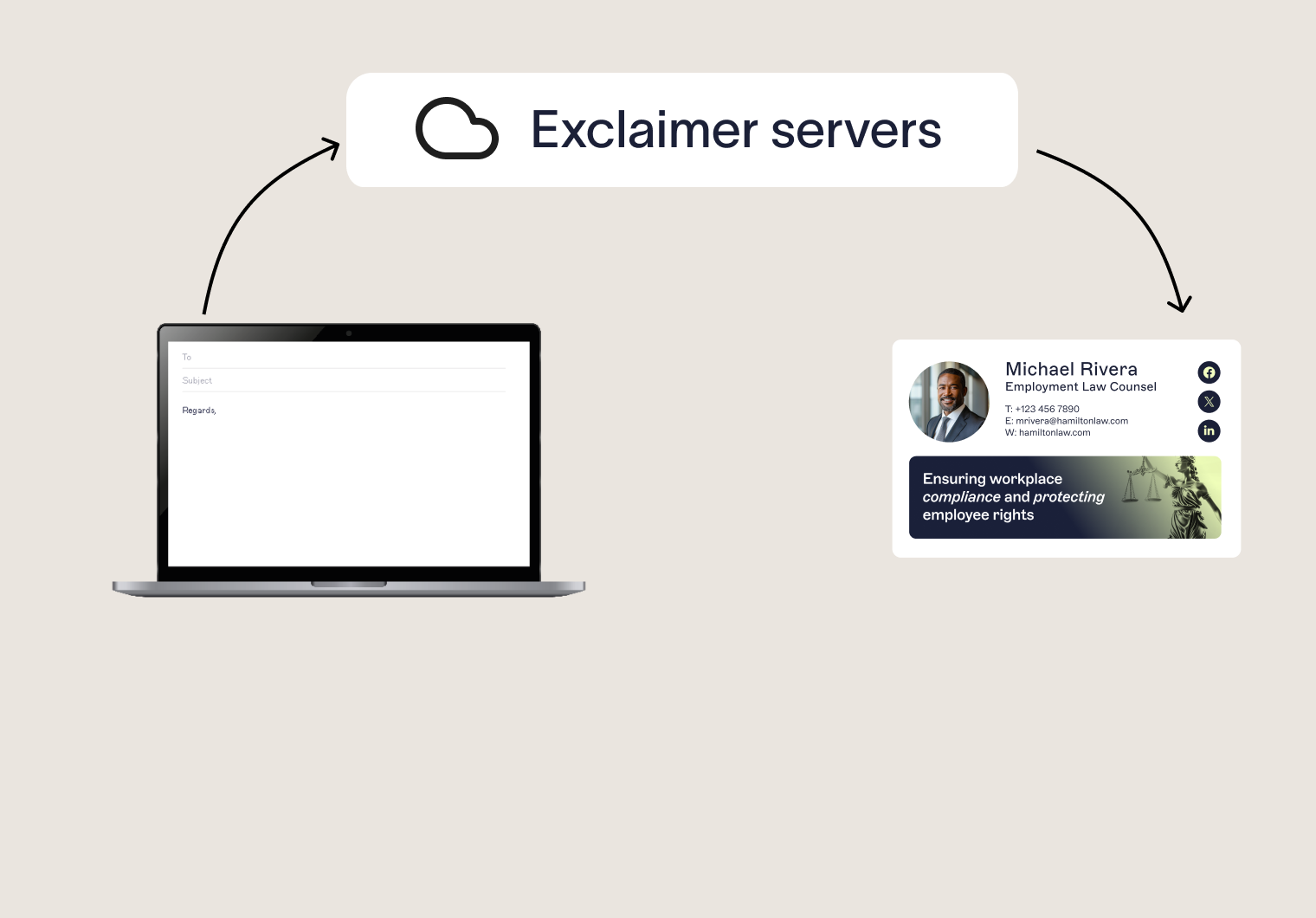 Exclaimer has been the leading signature management solution for 25 years. We are the only solution that has a 100/100 security scorecard. Our modern cloud-based technology will save your team time, save your business money, and allow you to easily implement disclaimers and brand requirements across signatures.