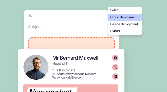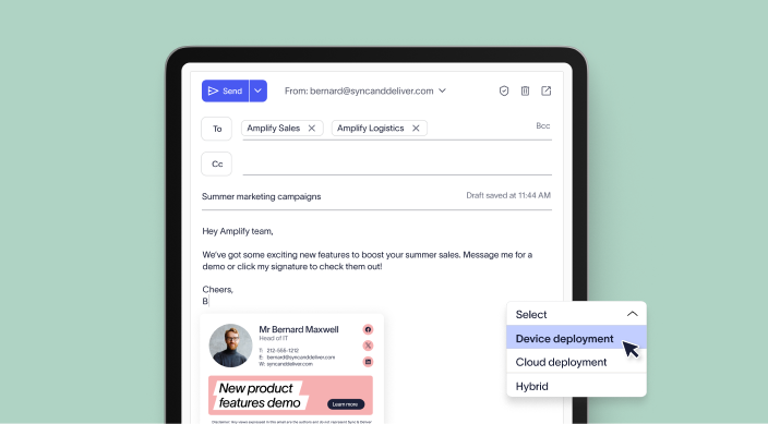 Apply centralized signatures whilst composing emails in supported email clients (Outlook or Gmail), offering a familiar end-user experience.
