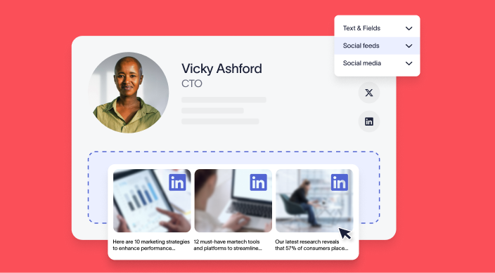 Display your three latest LinkedIn or Facebook posts in your email signature to increase social media engagement.