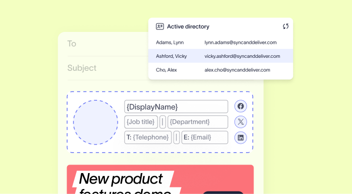 Enable Exclaimer to securely read user data from your active directory and populate it in real-time to your email signatures.