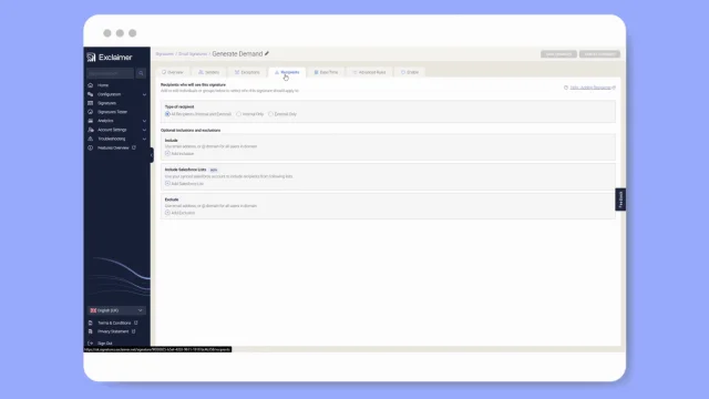 Connect your Exclaimer subscription to Salesforce via the Integrations settings in your dashboard.