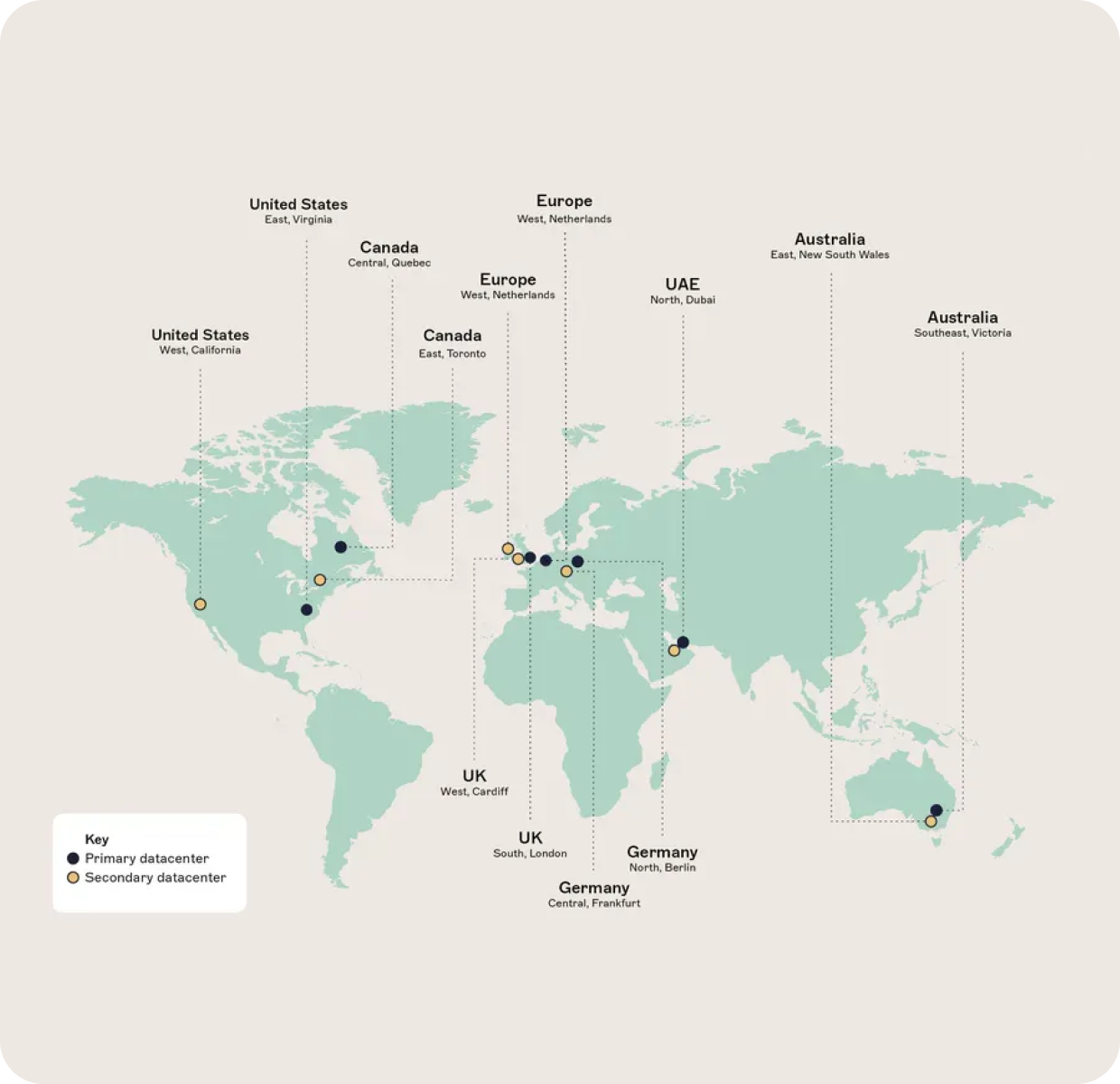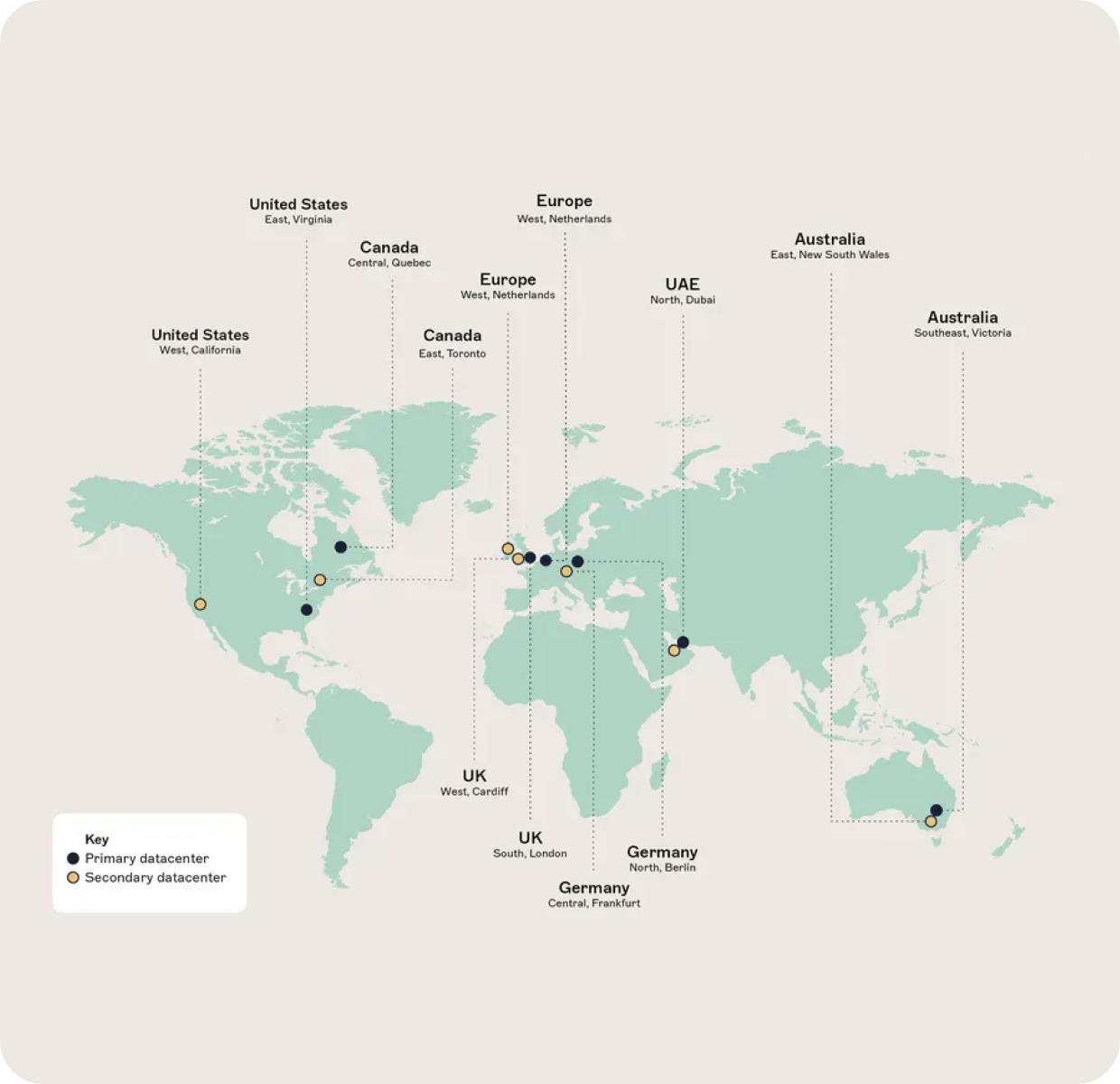 Exclaimer is a cloud-native platform designed for performance, reliability, and compliance. Our infrastructure spans 14 global data centers, grouped into six geographically separated active-active pairs. This architecture ensures: