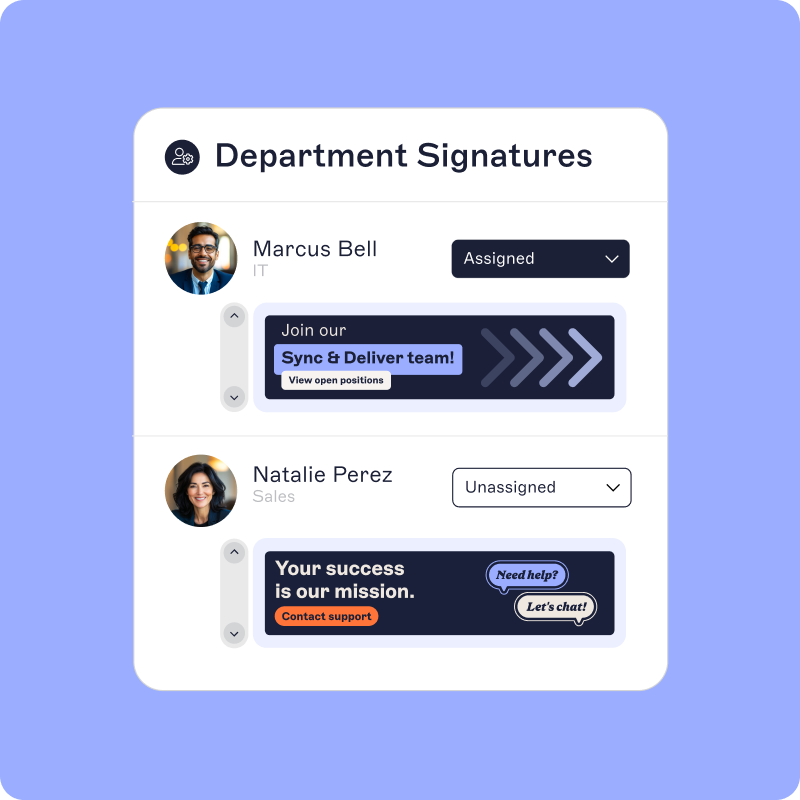 Schedule signature updates. Automate changes for events, seasonal campaigns, compliance updates, or announcements to keep communications relevant and up-to-date.