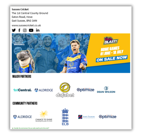 With Exclaimer, Sussex Cricket’s marketing team can: