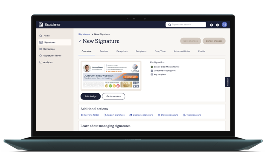 “Whether you want to reinforce your brand, share important news or simply ensure that your contact details are delivered consistently, Exclaimer is the best way to manage the process efficiently.”