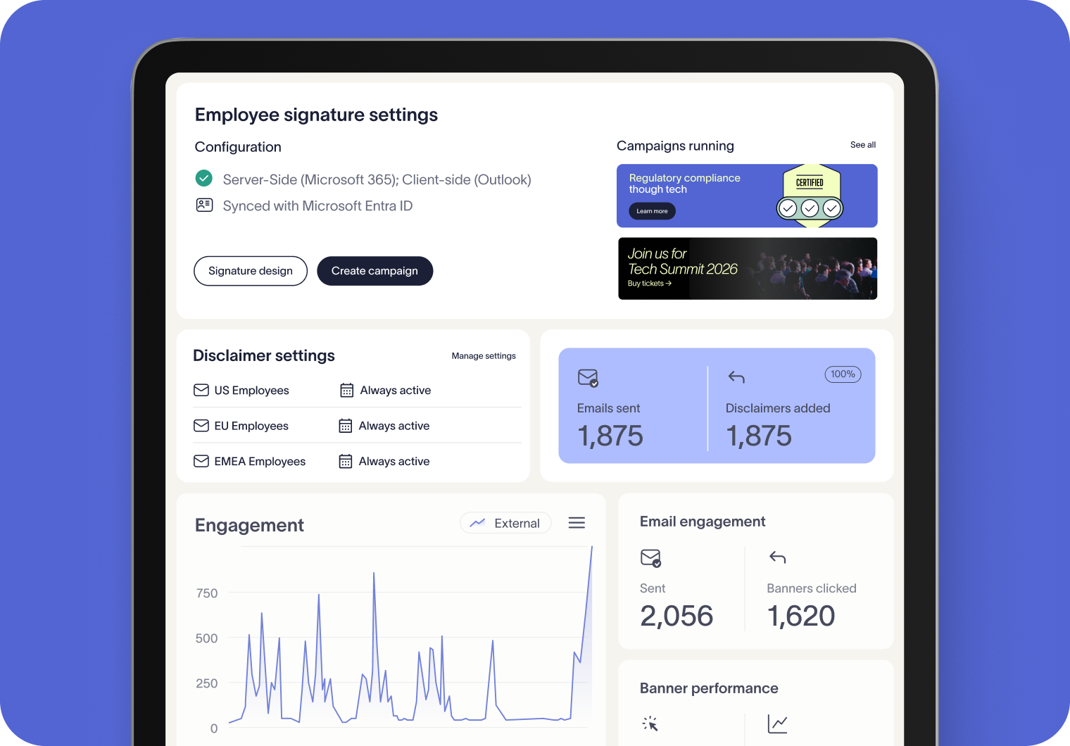Yes. Exclaimer is trusted by some of the world’s largest enterprises. Our platform is designed to scale globally, with centralized management and automation that works across complex hierarchies, multiple regions, and regulated industries.