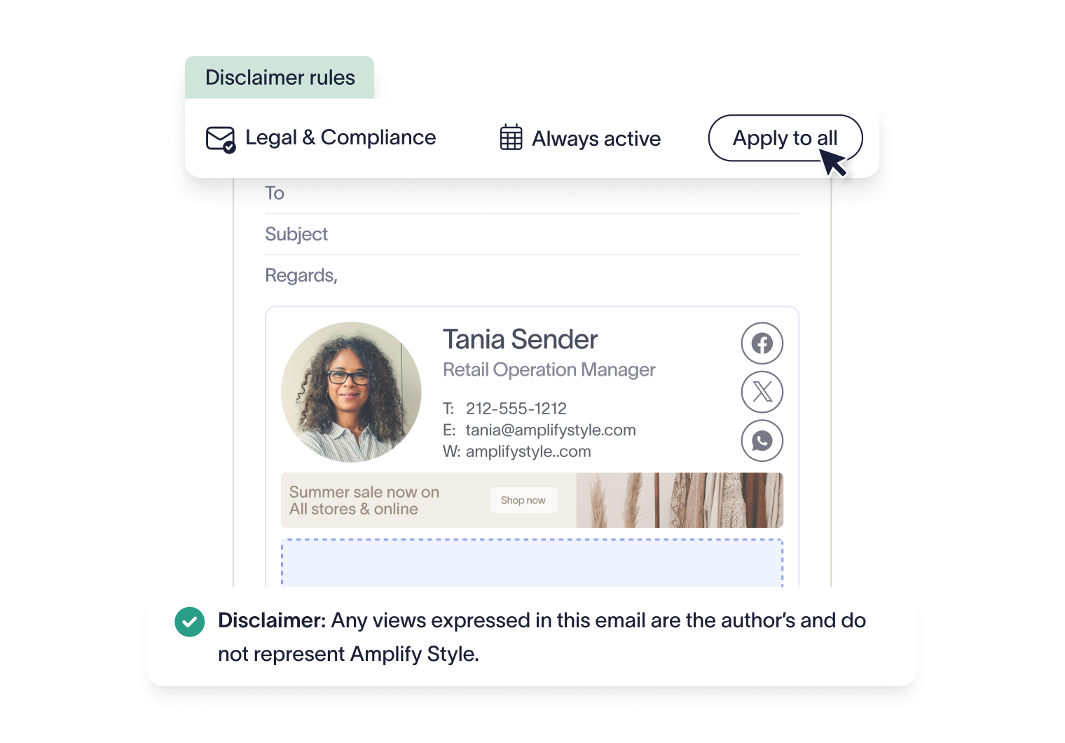 From regional offices to sub-brands, it’s easy to roll out the correct template everywhere. Signature Rules ensure consistent branding across markets, languages, and business units, even during rebrands or mergers.