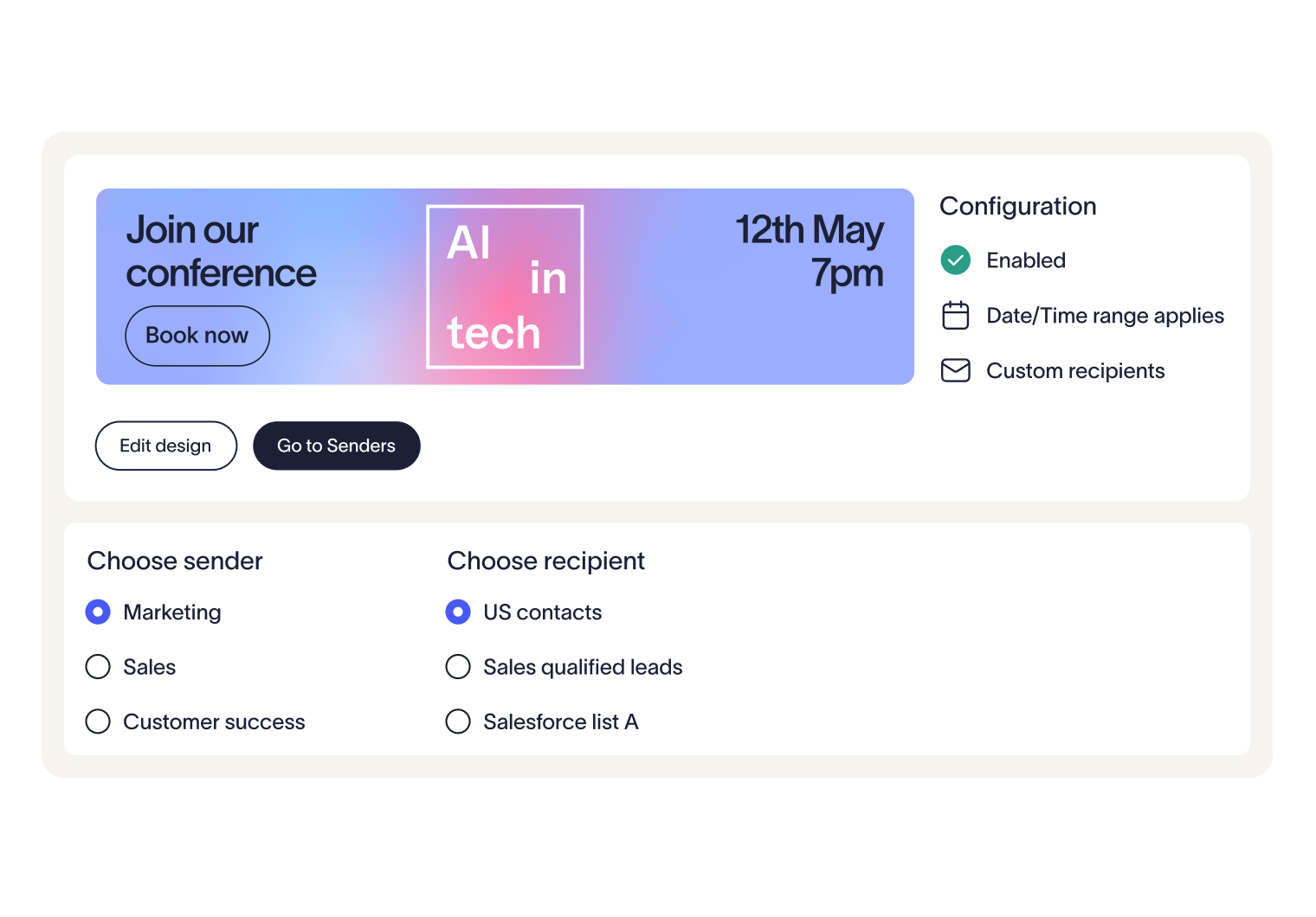 Absolutely. Exclaimer lets you apply targeting rules so recipients see the most relevant content — for example, event invites only go to contacts in that region, while product updates go to existing customers.