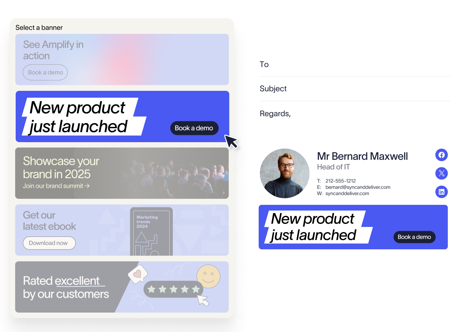 Marketing usually designs and uploads banners, while Sales decides when and where they should appear. With Signature Rules, you can target campaigns by account, territory, or industry, ensuring outreach supports both Sales pipeline goals and Marketing brand consistency.