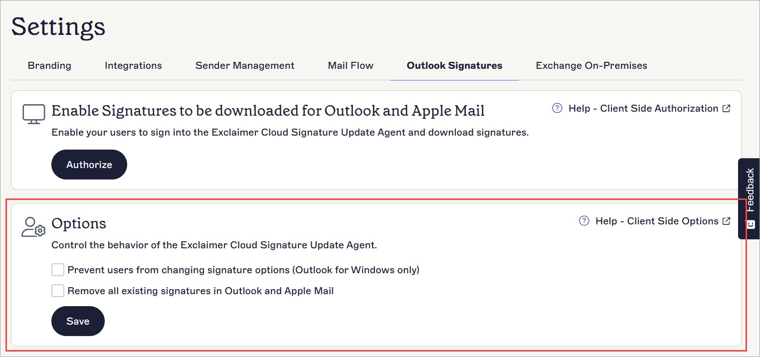 Optionen beim Ändern Ihrer Outlook-Signaturen in Exclaimer