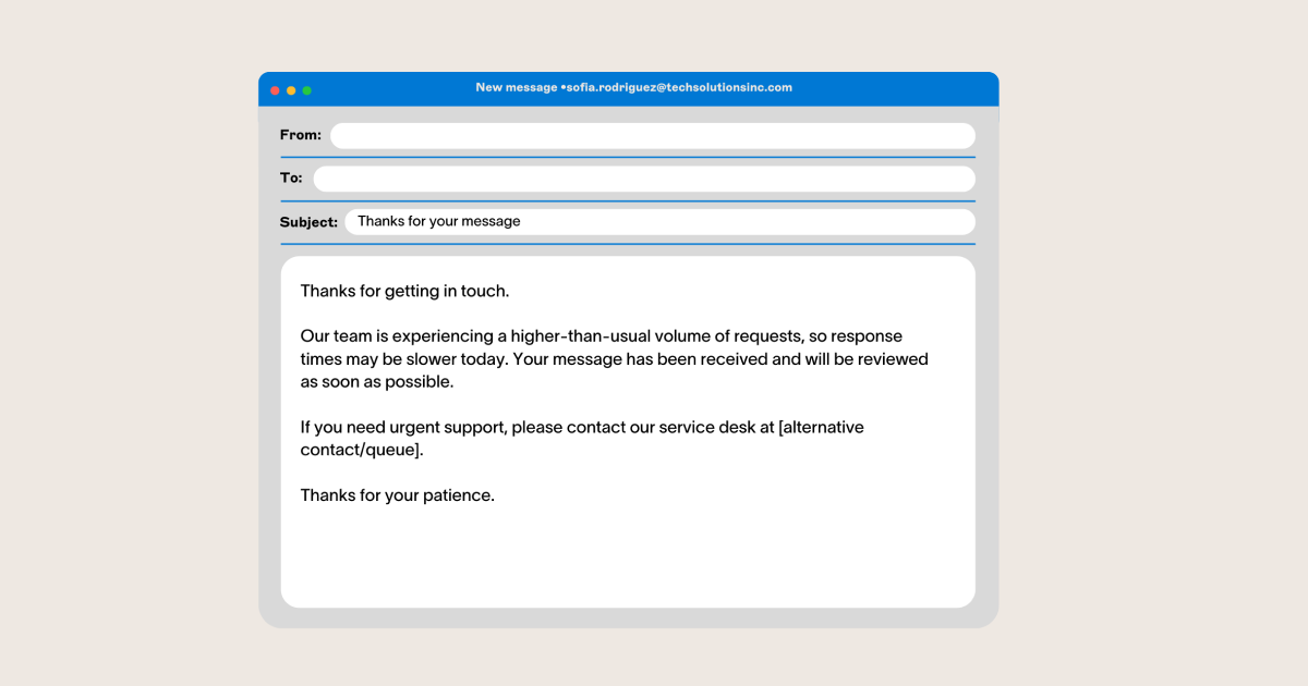 It often sets response time expectations and can provide alternative contact information. This helps maintain clear communication during disruptions: