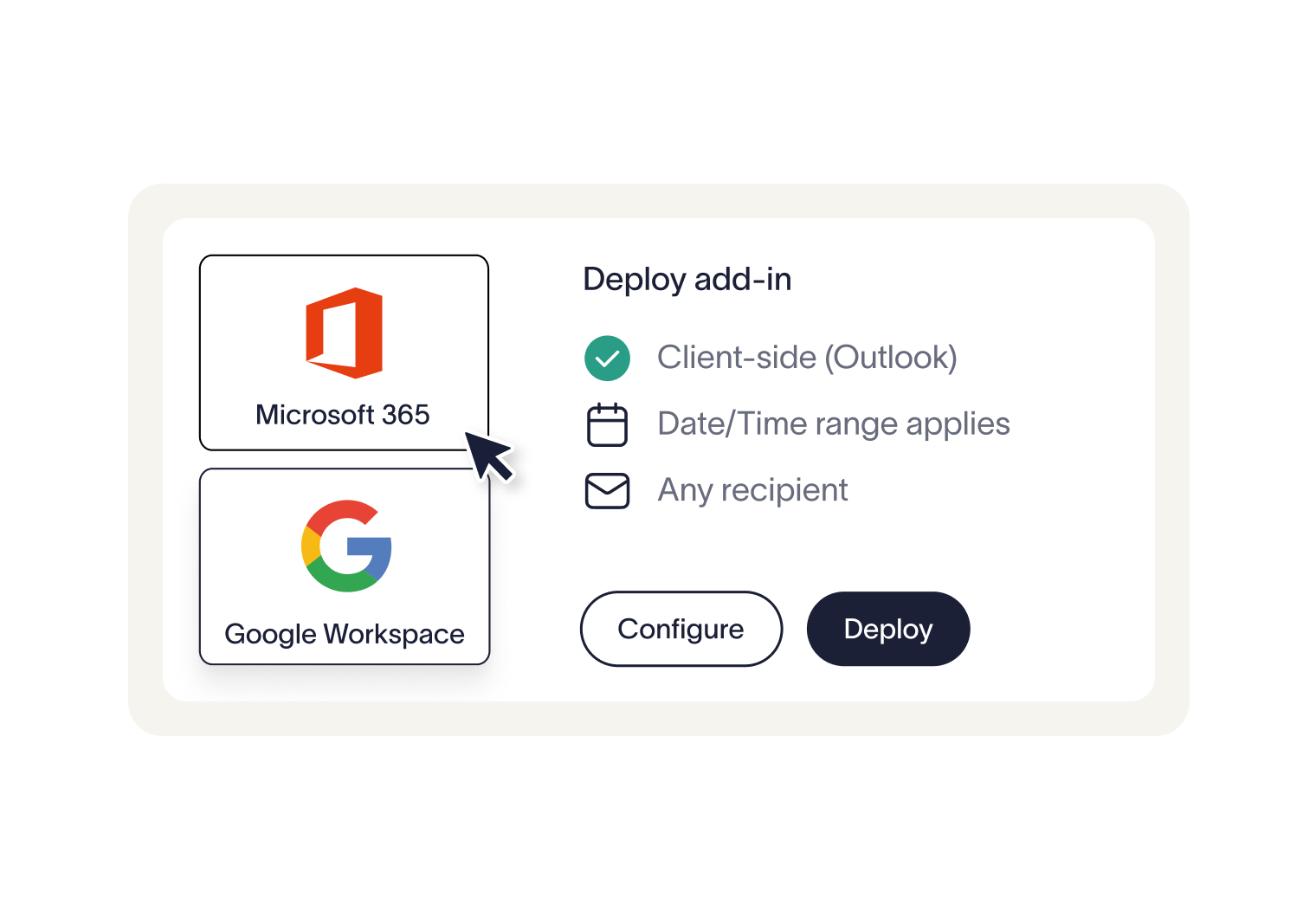 With device deployment, signatures are applied locally on user devices. Some organizations prefer this option for the familiar experience and added assurance; However, Exclaimer’s cloud deployment is just as secure.